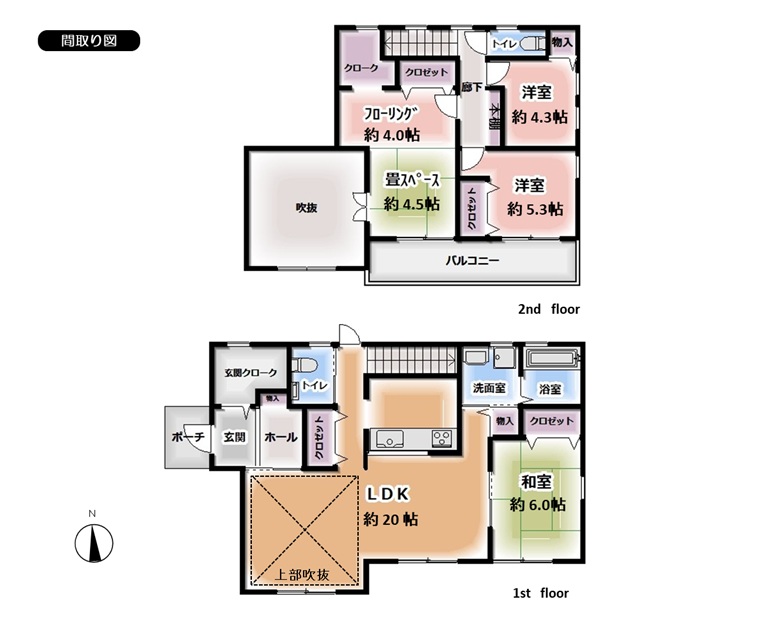 | 間取り詳細 | LDK20.0、洋室5.3、4.3、8.5(畳スペース含む)、和室6.0 |