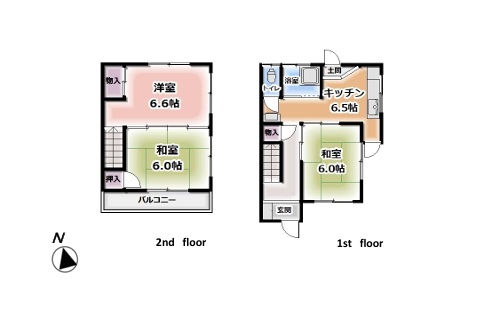 DK6.5、洋室6.6、和室6.0、6.0