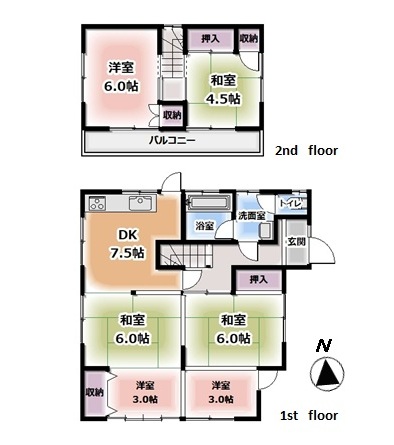 | 間取り詳細 | DK7.5、和室6.0、6.0、4.5、洋室6.0、3.0、3.0 |